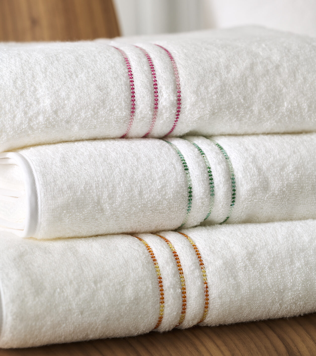 Serviettes, peignoirs, tapis de bain, vous découvrirez la douceur des éponges VIS -A-VIS, exclusivement tissées en France.